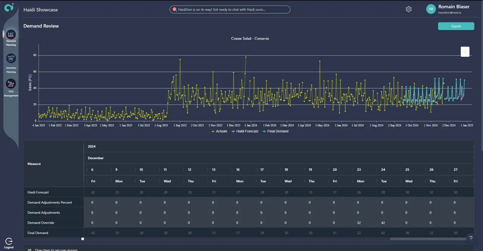 Haidi uses AI to merge your data and compute a tailored forecast and inventory plan
