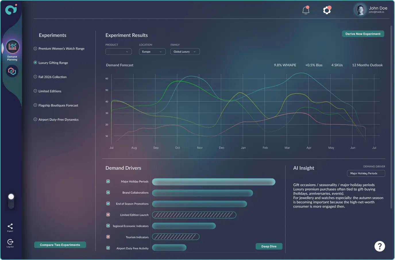 Haidi helps you understand the impact of different demand drivers – such as price, promotions, external events etc., and measure how much each one influences sales. Once the analysis is done, Haidi automatically translates those insights into the logic powering your demand-planning model.